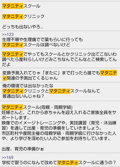 今日のみこのアーカイブ42分くらいのところで「またに」の予測変換で「マタニィティースクール」とか