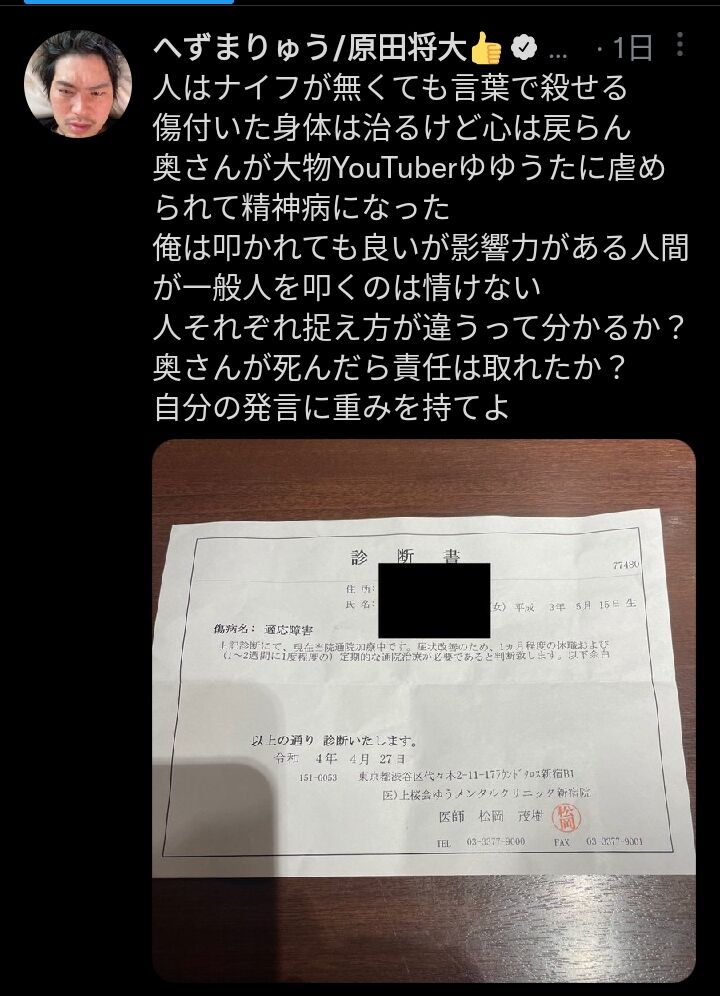 「へずまりゅうが結婚したっていうの見たわ。興味あって調べてみたんだけど、女性のほう、あれ病気でしょ」